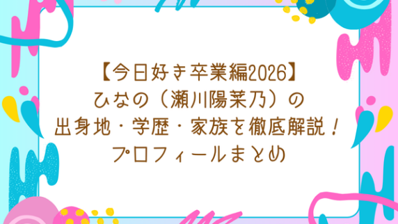 今日好きになりました 【今日好き卒業編2026】ひなの(瀬川陽菜乃)の出身地・学歴・家族を徹底解説!プロフィールまとめ